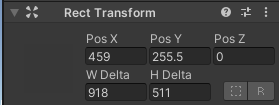 RectTransformを持つゲームオブジェクトが「親オブジェクトがRectTransformを持たない」かつ「MinX≠MaxXあるいはMinY≠MaxY」の場合、以下のようにPosX/PosYは変化せず、width/heightはW Delta/H Deltaに代わります。