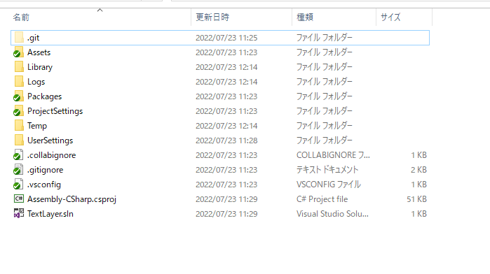 この設定を使ってgitのリモートリポジトリに登録されたUnityプロジェクトをダウンロードすると、以下のようなフォルダが構築されます。